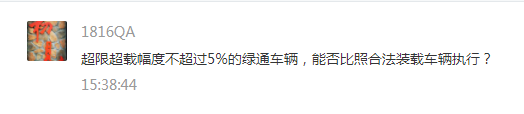 請問:超限超載幅度不超過5%的綠通車輛,能否比照合法裝載車輛執(zhí)行?
